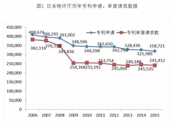 但是基础科学的逐渐落伍一定会反应到技术应用上,实际上,不仅文部科学省的报告里面日本近年来专利许可量呈现下降趋势,我在之前的文章也写过,日本专利特许厅统计的日本本土的专利申请量近年来也呈现下降的趋势,如下图,日本本土的专利申请量从2005年的40.87万件下降到2015年的31.87万件,10年下降了四分之一。