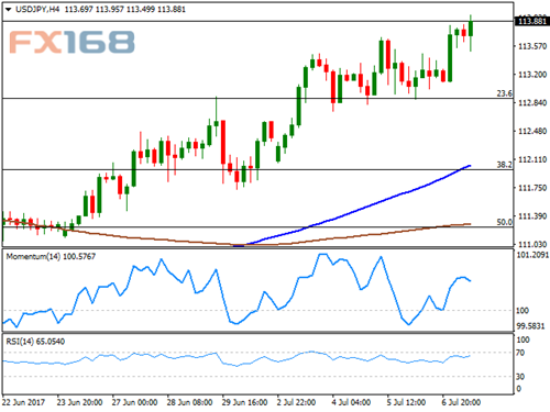 该货币对上涨至两个月高位113.95,非农出炉之后维持在这一水平附近。尽管非农表现良莠不齐,但美元兑亚洲货币仍受益于收益率上升,华尔街开盘之前10年期美债收益率位于2.39%。