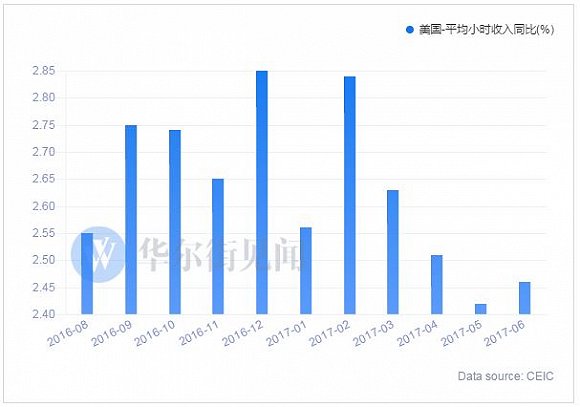 《华尔街日报》认为,仍没有薪资压力累积的显著迹象。过去一年时薪同比增速都稳定在2.5%,只有今年5月下修到了2.4%。