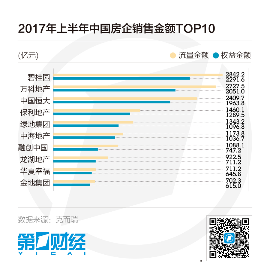 其中,恒大超过碧桂园重夺销售权益榜榜首,达到2088亿元。碧桂园则是流量金额的冠军,其更多的合作项目让其流量金额保持领先。上述两家房企在一二三四五线的广泛布局让它们可以有效对抗调控带来的影响,可以说在每一个地区都有货值,因此可以保证稳定的规模收入。