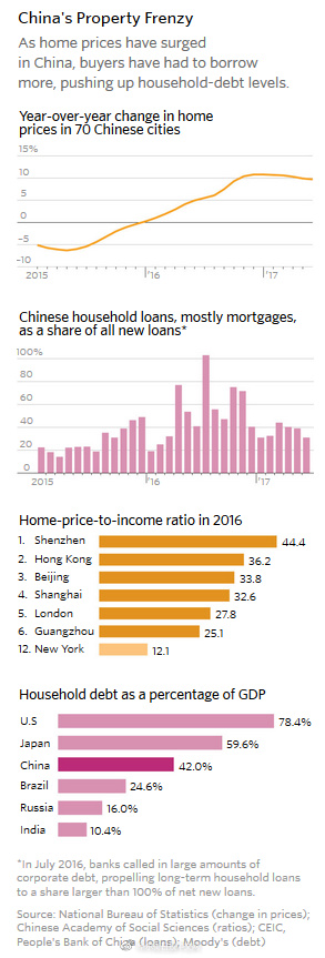 中国社会科学院高级经济学家张明的分析显示,深圳市的平均房价是家庭年收入的44倍,而纽约市只有大约12倍。中国政府的数据显示,中国70个大中城市5月份房屋销售价格同比上涨9.7%,涨幅高于去年9月份最新一轮房地产调控出台时的9.3%。