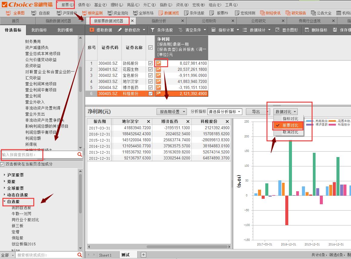 3.然后可以去新股票数据浏览器中提取指标进行对比,点击指标数值前面的折线图,下方会展示历史走势,在数据对比位置选择股票对比,然后点下其他股票数值前面的折线图,就可以将图形进行叠加对比啦