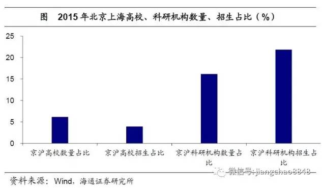 高等教育水平决定了国家竞争力。当前中国高等教育资源的集中度有多高?仅从高校口径来看,似乎较为有限——北京、上海高校占全国比重约为6%,招生人数约为4%。但科研机构口径下,相应比重则大幅提升,数量占比和招生人数占比分别为16%和22%。这意味着,在当前教育资源配置制度下,年轻人经由高考、考研,从三四线城市进入一线城市的高校和科研机构,并谋求就业机会,而这也是优质人才向京沪集聚的过程。