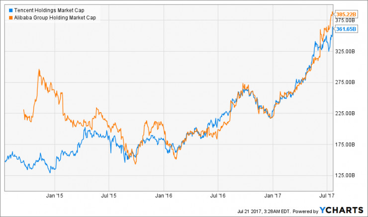 据雷锋网7月24日报道,近日,美国《财富》杂志公布了2017年全球500强公司的名单,阿里巴巴集团和腾讯控股有限公司双双入围。阿里和腾讯成为继京东之后入围全球五百强的另外两家互联网公司。