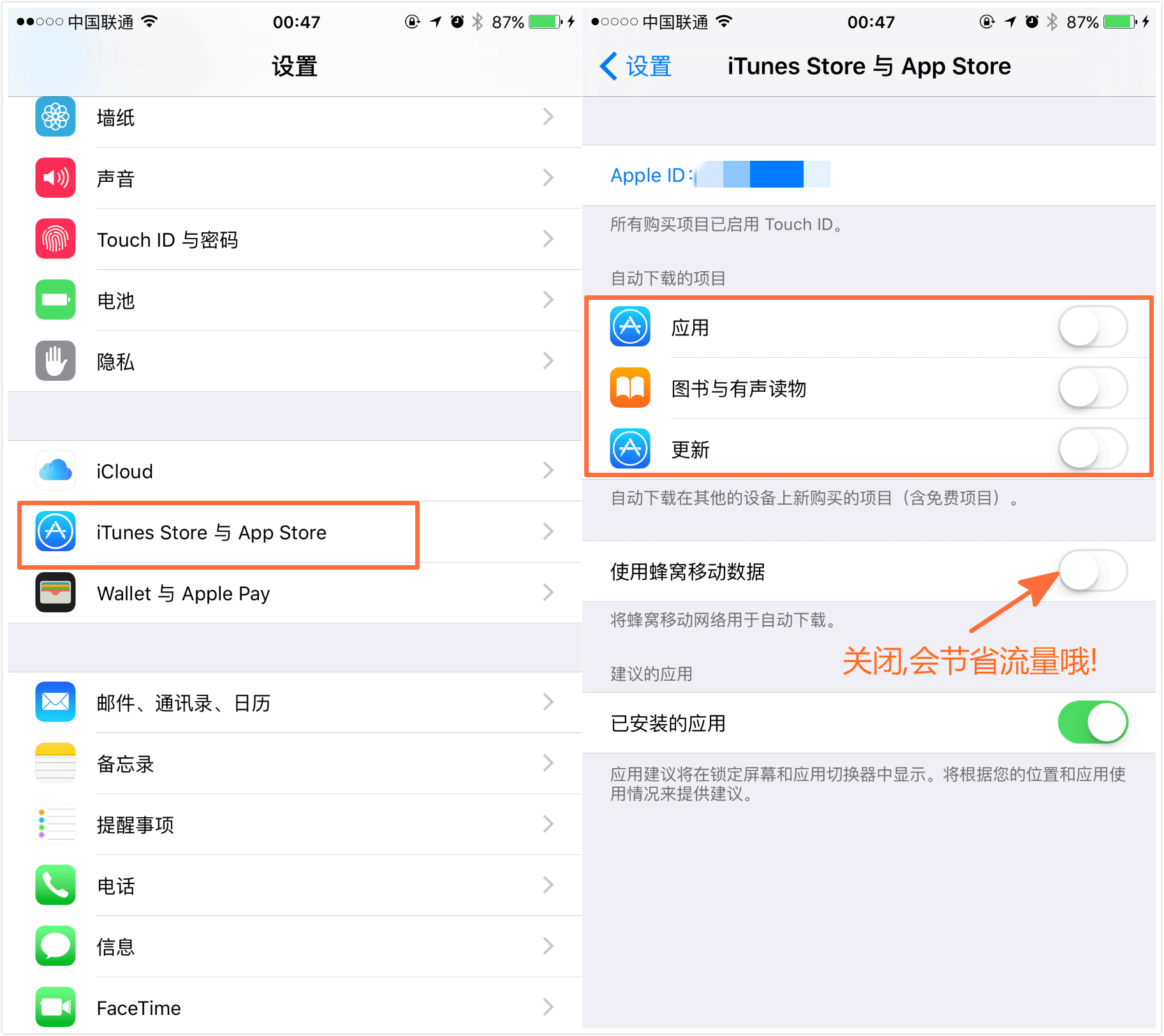 如果你觉得手动更新太麻烦了,不想关闭后台自动下载,那就把【使用蜂窝移动数据】关掉吧,这样更新行为就只能在wifi环境下进行,能省不少流量呢!