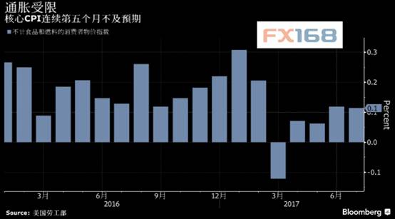 数据还显示,扣除食品和能源等波动比较大的产品,美国7月核心CPI月率上涨0.1%;预期上涨0.2%,年率上涨1.7%,符合预期。