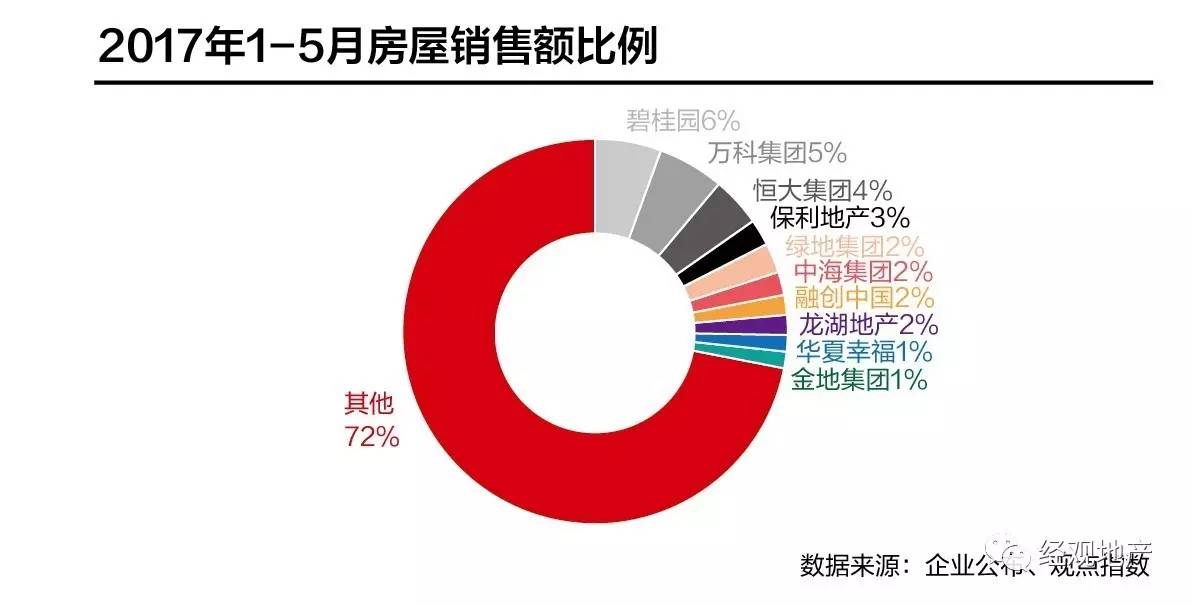 市场向寡头集中的趋势非常明显,过去五年开发前十强企业市场份额从12%升至19%,一些预测认为未来会达到50%。今年前五月,他们就包揽了将全国近30%的房屋销售金额。