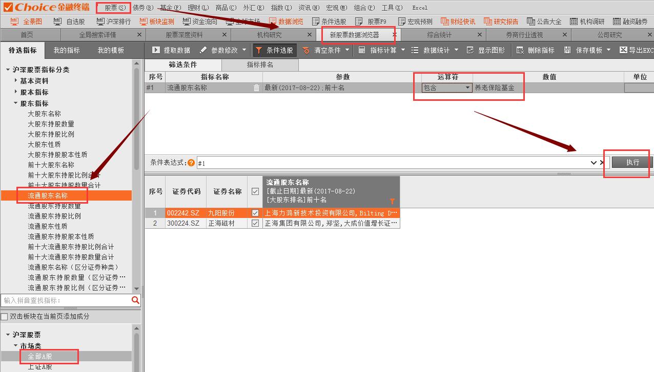 养老金终于出手了。与想象中略有不同的是,养老金以“基本养老保险基金八零二组合”的账户出现在一家中小板和一家创业板的十大流通股东名单之中,分别持有正海磁材(300224.SZ)392.92万股和九阳股份(002242.SZ)286.7万股,位列第九和第十大股东。那么如何在终端中查找相关数据呢?我们往下看~~~