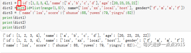第二个字典通过dict函数构建;