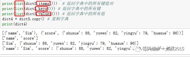这里需要注意的是,必须使用list函数套在items、keys、values等方法外面,否则不会产生列表结果,而是一个迭代器。