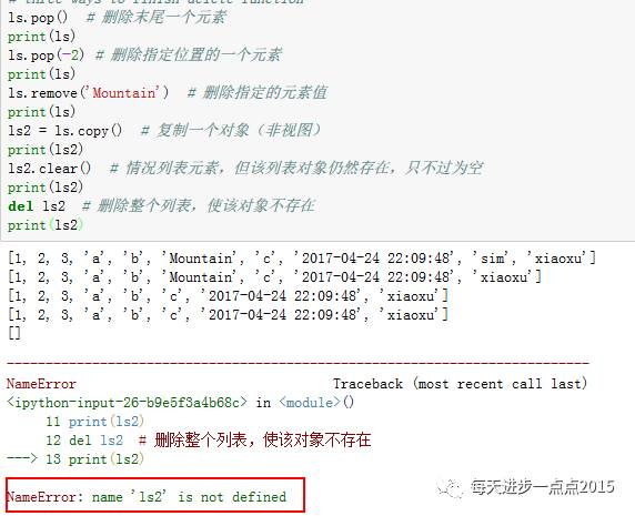 del函数删除列表对象;