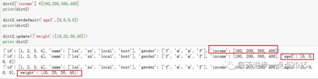 第二个红框通过setdefault方法增加键值对;