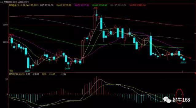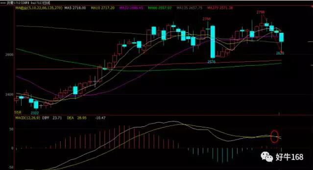 从日线图来看,沥青MACD指标有形成顶背离,价格有部分回落的意图。而三十分钟级别当中价格受到了国际原油的拖累进一步下行,将下方135日、270日均线全部击穿,而国际油价从短期内来看无重大利好消息时难以形成较强反弹,所以沥青价格在近期也有可能会受到拖累。所以近期尽量是以逢高做空的方式为主。日内建议回踩2620附近做多,止损于2600附近,止盈于2670附近。如果价格上探2700附近可以做空,止损于2720附近,止盈于2630附近。