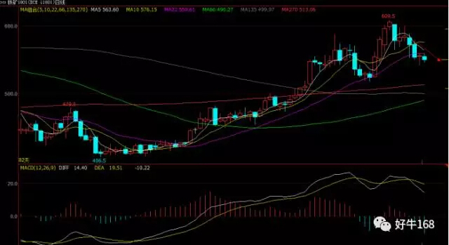 从日线图来看,昨日铁矿价格形成小幅反弹,但是日内的最大反弹力度都未触及日线的五日均线位置,相对来说多头力量就比较薄弱,那么今日即可在五日线附近去布局空单。日内建议:545附近可以布局多单,止损540,止盈560;在563附近考虑布局空单,止损568,止盈550。
