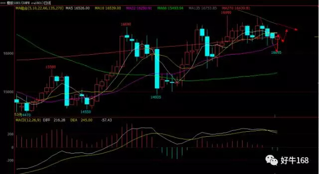 从日线级别图来看,橡胶上下方的空间依旧在盘整震荡格局之中。昨日价格击穿22日均线之后快速的抽回,收回至五日均线附近,意味着价格的多头力量非常强,而上方135日均线压力较大,价格在22日均线与135日均线之间运行就可以当中震荡的方式去操作。而因为小级别的多头力量较强,所以综上所述日内以逢低做多的方式为主更为合适。日内建议:价格触及16750附近布局空单会较为合适,止损16800,止盈16400.价格触及16350附近可以布局多单,止损16250,止盈16800。