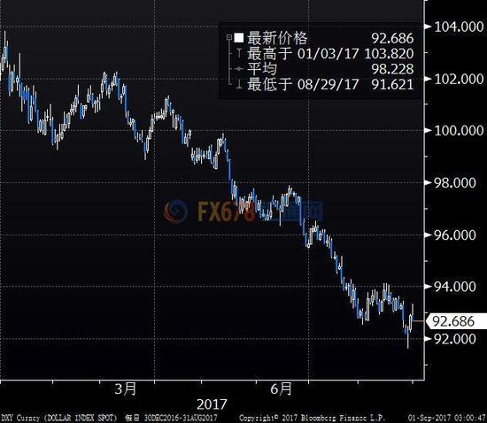 美元今年以来一直相当疲弱。衡量一揽子货币的美元指数(92.8571, 0.2874, 0.31%)年内已经下跌了10%。自美国大选以来的跌幅为5.32%。
