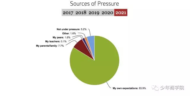 结果呈一边倒的趋势——83.9%的同学压力来源是自我期望,来自于家长老师的仅仅占了7.8%。这意味着,来自内在的驱动力远远比外力更有效。