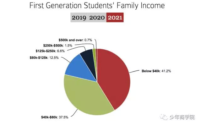41.2%的受访学生家庭总收入低于4万美金/每年,而总收入高于50万美金/每年的家庭只占有0.7%。