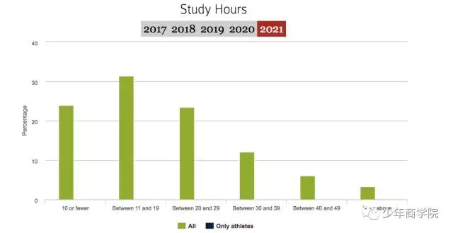 领导力向来是哈佛耶鲁等名校在招生中最为看重的素质之一,在受访新生中,只有15.8%的学生没有担任过领导者,34.1%的受访学生表示自己同时保持着3个或以上的课外活动领导者角色,26.8%的同学兼任两个课外活动的领导者,23.8%的同学担任一项课外活动的领导者,真正保持了学习社团两不误。