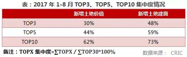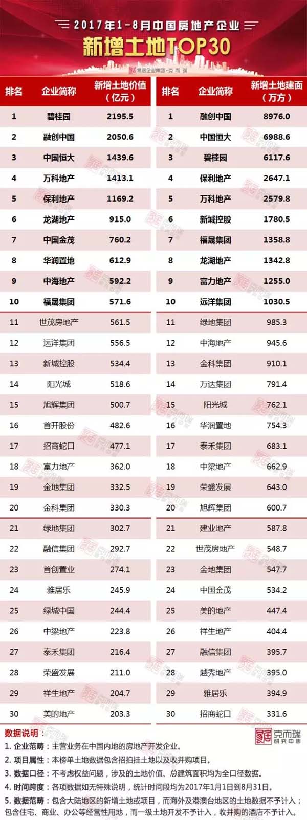 《2017年1-8月中国房地产企业新增土地TOP30》发布