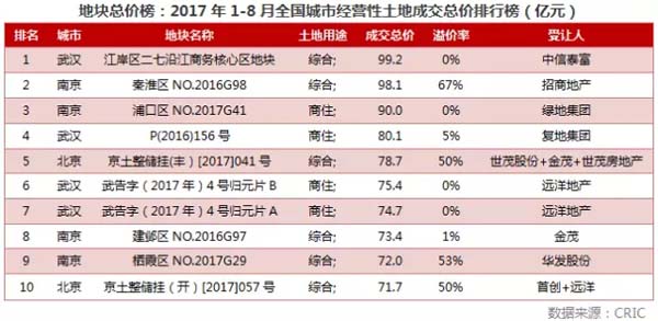 - 城市:全国 发布时间:2017-09-06 报告类型:土地交易分析 发布机构:克而瑞