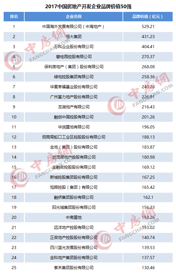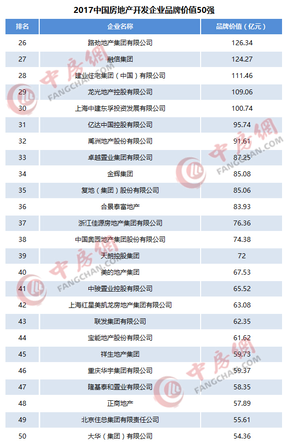 2017中国房地产企业品牌价值50强揭晓强势品牌引领行业发展