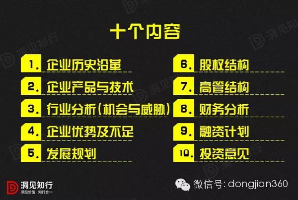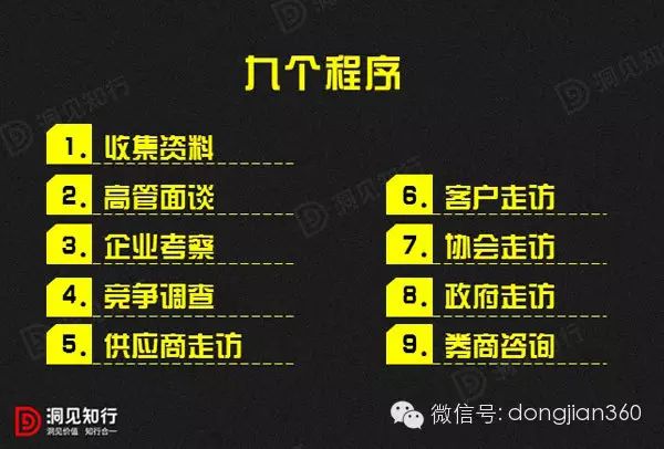 竞争调查:梳理清楚该市场中的竞争格局和对手的情况。通过各种方式和途径对竞争企业进行考察、访谈或第三方评价;对比清楚市场中的各种竞争力量及其竞争优劣势。对竞争企业的信息和对比掌握得越充分、投资的判断就会越准。