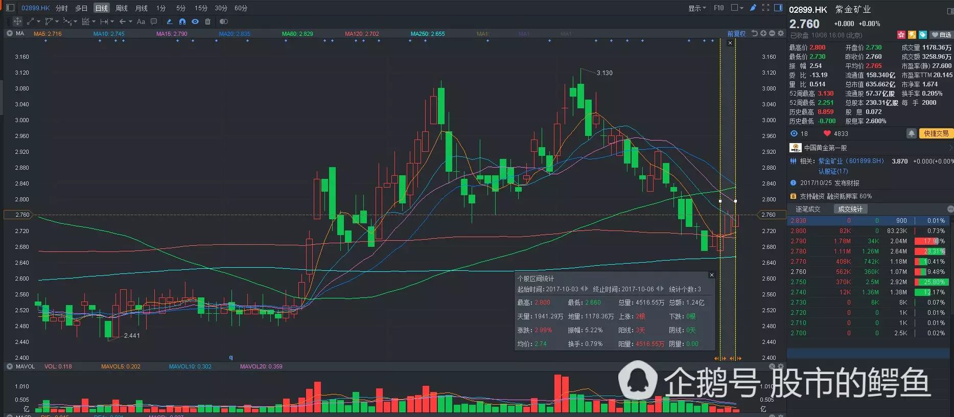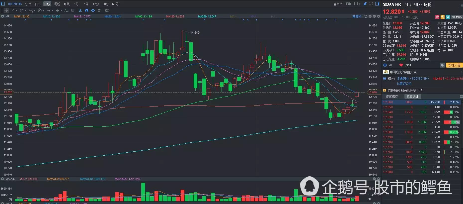 在A股市场,江西铜业600362与紫金矿业601899自前期高点调整以来,累计跌幅均在10%左右,调整充分到位,目前市场只缺催化剂,国庆长假期间,地缘政治方面并未出现异样,上市公司暂时未发布利好,但是大概率预计三季报业绩会报喜,市场预计会有一波上涨。