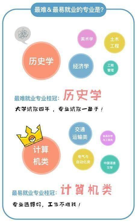 报告调查结果显示,相比学校而言,专业区给就业大学生群体造成的压力更大,而在国内高校目前数百个专业中,这次抽样调查结果,最难就业的专业前五分别为:历史学、经济学、土木工程、美术学以及工商管理;而比较容易就业的专业前五位则为:计算机类、交通运输类、电气与自动化类、中国语言文学以及食品科学与工程类。