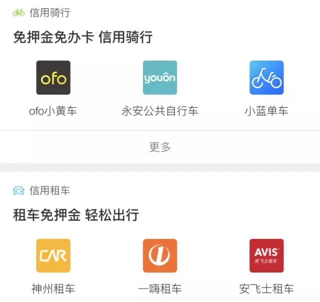 信用骑行,可以免押金骑小黄车、小蓝车……
