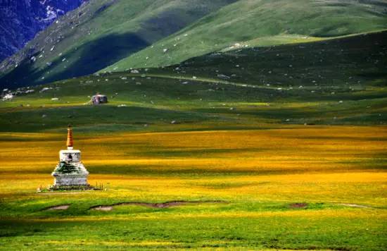 半坡的绿草,白的羊,红的古建筑,绚丽的色彩点缀出甘南无尽的美!
