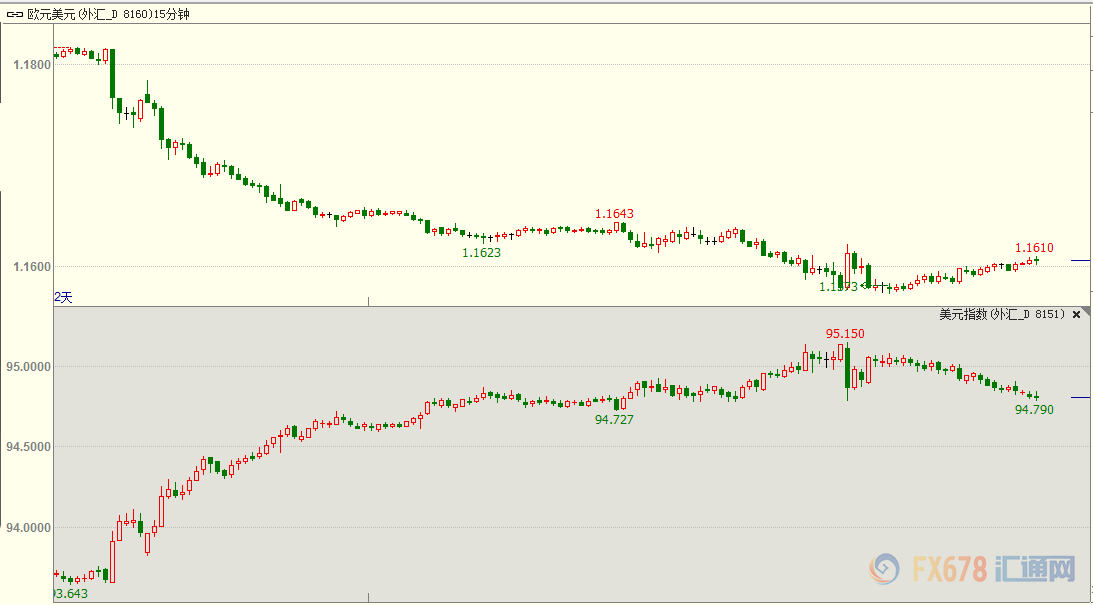 图:欧元兑美元15分钟走势