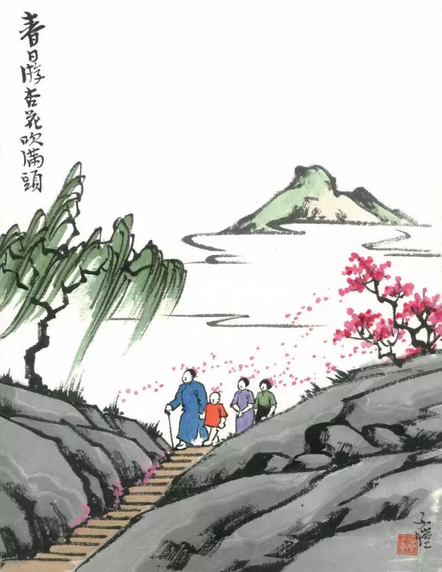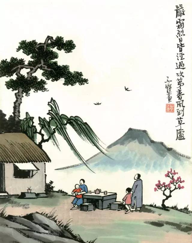 他的画处处映着青山绿水、春日斜阳、民国课堂、童稚嬉戏,民国质朴的风土人情,家国情深……