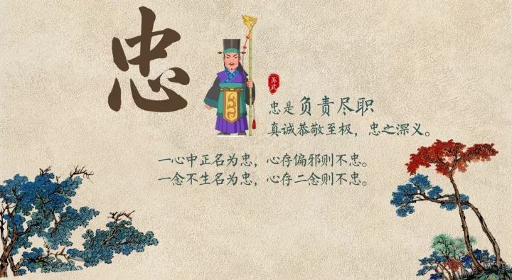 忠是忠心+忠诚+忠实。