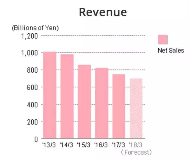 根据尼康公司财报显示,2017财年(截至2017年3月),公司营收同比下降了8.6%,净亏损71.07亿日元(约合人民币4亿元)。而且,从2013财年到2017年财年,尼康的营收同比均发生下跌。