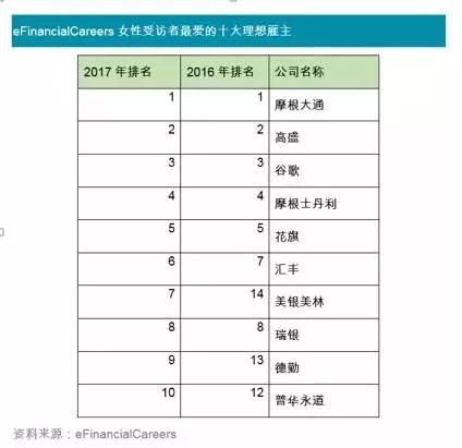 比起其他任何一家投行,想进J.P.Morgan的女生更多。这家银行不仅在eFinancialCareers 2017年理想雇主排名中综合水平位居榜首,它也是本次调查中女性受访者最受青睐的雇主。