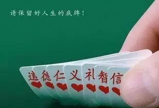 人生可以经历100次挫折不可以输光1次。持有做人的底牌,就能在变幻莫测、险礁暗藏的人生路上,趋利避害,尽显从容,进可攻,退可守。王牌,就是要给人看的牌,这种牌要大,要正能说明问题,人一听就竖大拇指,所以,做事就要有王牌。故称为做人有底牌、做事有王牌。