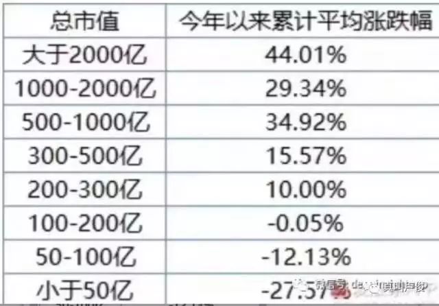 这是今年A股票市值的累积涨幅,一个惊人的现象,规模越大涨幅越高