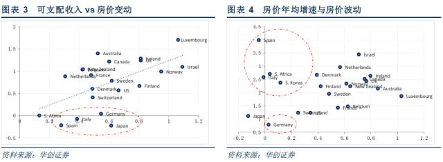 从更长的时间跨度来考察,1975年至今,德国人均可支配收入累计上涨73%,实际房价仅上涨3%。同期涨幅不及德国的西班牙、意大利和日本等国房价波动剧烈,都曾经历地产泡沫,并因地产泡沫后的深跌拖累了长期房价涨幅,而德国房价的波动性处于最低的水平。换言之,不论是短期波动还是长期涨幅,德国都是发达经济体中房价最为稳定的国家。