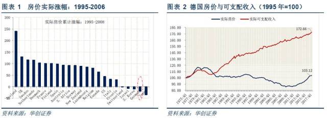 但过低的涨幅、尤其是 1995-2006年席卷全球的地产泡沫中德国房价不升反跌,在相当程度上映射的是其疲弱的经济基本面,德国最终借道出口来分享全球地产盛宴,这并非没有代价,且难以复制。