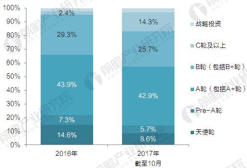 图表4:2016-2017年中国基因测序行业融资轮次分析(单位:%)