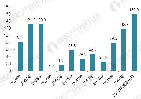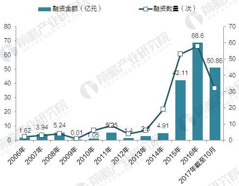图表1:2006-2017年中国基因测序行业融资规模分析(单位:次,亿元)