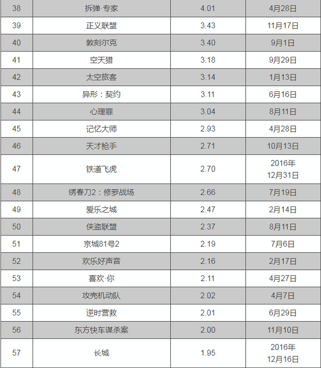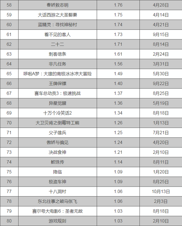 也是在2017年,国产片《战狼2》单片票房达到56.82亿,三个月观影人次达1.59亿,成为《星球大战:原力觉醒》之后全球范围内唯一一部单市场票房突破8亿美元的电影;在国庆档夺冠的《羞羞的铁拳》累计票房超过22亿,刷新2D电影内地票房纪录;《速度与激情8》打破进口片票房纪录,《摔跤吧!爸爸》打破印度电影内地票房纪录,《看不见的客人》打破西班牙电影内地票房纪录,《天才枪手》打破泰国电影内地票房纪录……