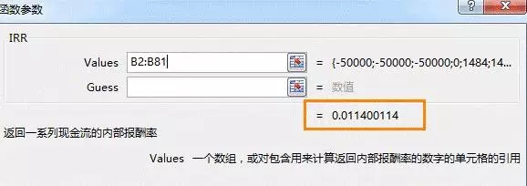 插入IRR函数,得出的实际年化收益是: