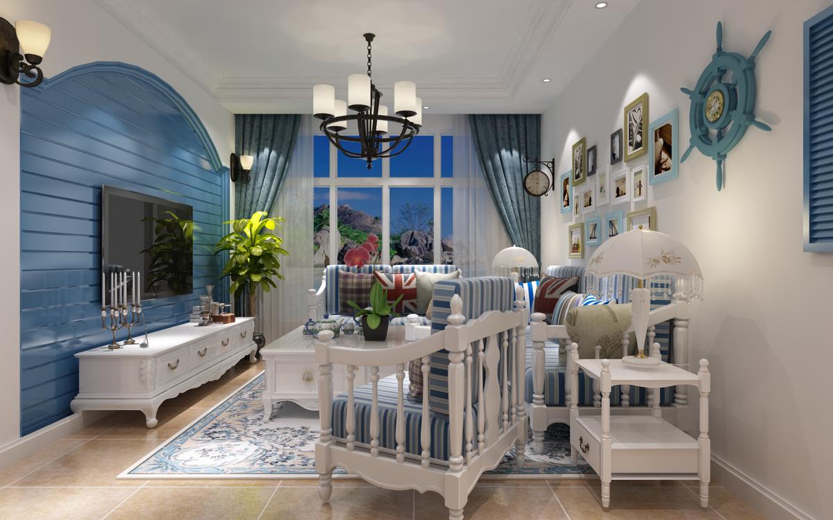 地中海田园风格的装饰手法有很鲜明的特征。比如家具尽量采用低彩度、线条简单且修边浑圆的木质家具。地面则多铺赤陶或石板。在室内,窗帘、 桌巾、沙发套、灯罩等均以低彩度色调和棉织品为主。素雅的小细花条纹格子图案是主要风格。独特的锻打铁艺家具,也是地中海风格独特的美学产物。同时,地中海风格的家居还要注意绿化,爬藤类植物以及绿色盆栽是常见的居家植物。