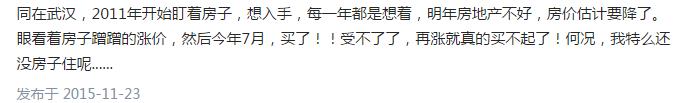 2015年留下评论的一位网友,表示已经观望了犹豫了好几年,最后决定买房,因为经历了几年的等待,已经不太相信房价会降了,认为现在不买以后更买不起了。