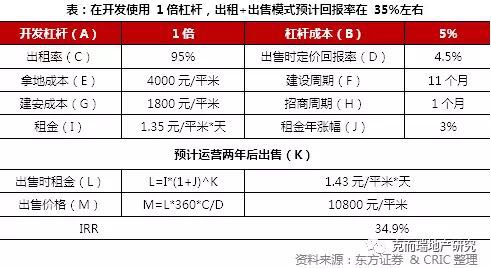 此外,高端仓储的成本主要集中在拿地成本、建安成本、运营费用和税费等,目前行业内单层高标准仓库的建安成本在 1800元/平米左右,以上海为例,预计在出租+出售模式下,项目出售时综合回报率能达到 34.9%。
