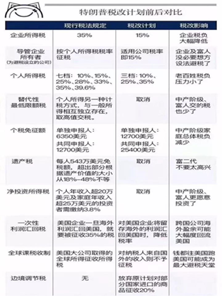 当地时间12月2日凌晨,美国参议院以共和党人多数票通过了具有历史意义的税改草案。根据特朗普的减税方案,未来10年将减免税收大约1.4万亿美元,将美国的公司税从35%大幅降低至20%,并降低了家庭和个人税率,个人所得税最高税率从39.6%减为35%,并将征税级差从7档减为3档,分别是35%、25%和 10%;个税起征点,夫妻合并申报的所得税起征点将从12700美元升至24000 美元(转化成人民币,意味着夫妻收入合计低于16.8万不用缴个税);此外,新税改方案还将废除遗产税、奥巴马医保税、替代性最低税等税种。
