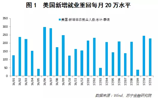 首先,美国经济继续向好,明年美联储可能加息三次。从数据来看,美国3季度GDP环比增长3.3%,11月新增非农就业22.8万人,总体上看美国经济处于较好水平(参见图1)。根据美联储12月声明,美联储预计2018年美国经济增速与今年持平,稳定在2.5%的水平;而根据美联储的利率散点图,明年美联储大概率加息3次,与今年加息次数相同。