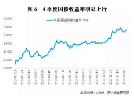 其次,债券已经具有配置价值,可以适度配置债券基金。今年4季度债券收益率经历了一波上行,10年期国债收益率从9月底的3.6%上行到目前的3.9%附近(参见图6)。随着市场对央行的资金投放预期更为稳定、美国加息落地、资管新规过渡期据称延期至2020年,预计债券市场已经具有较好的配置价值,可以适度配置债券基金。